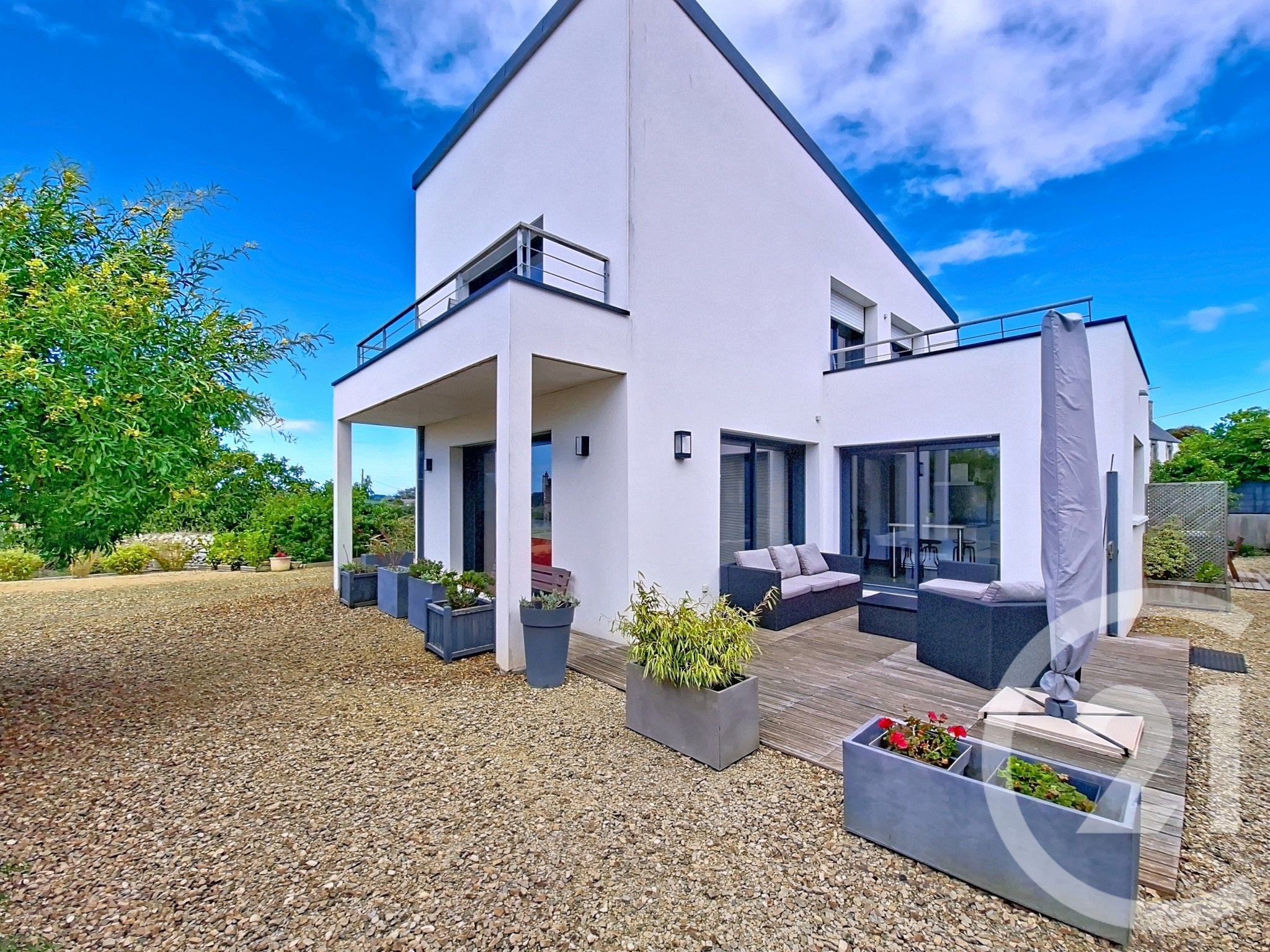 Édifiée sur un terrain clos et paysager d'environ 700 m², la maison dispose également de deux terrasses de 20 m² et 12 m², et d'un abri de jardin.